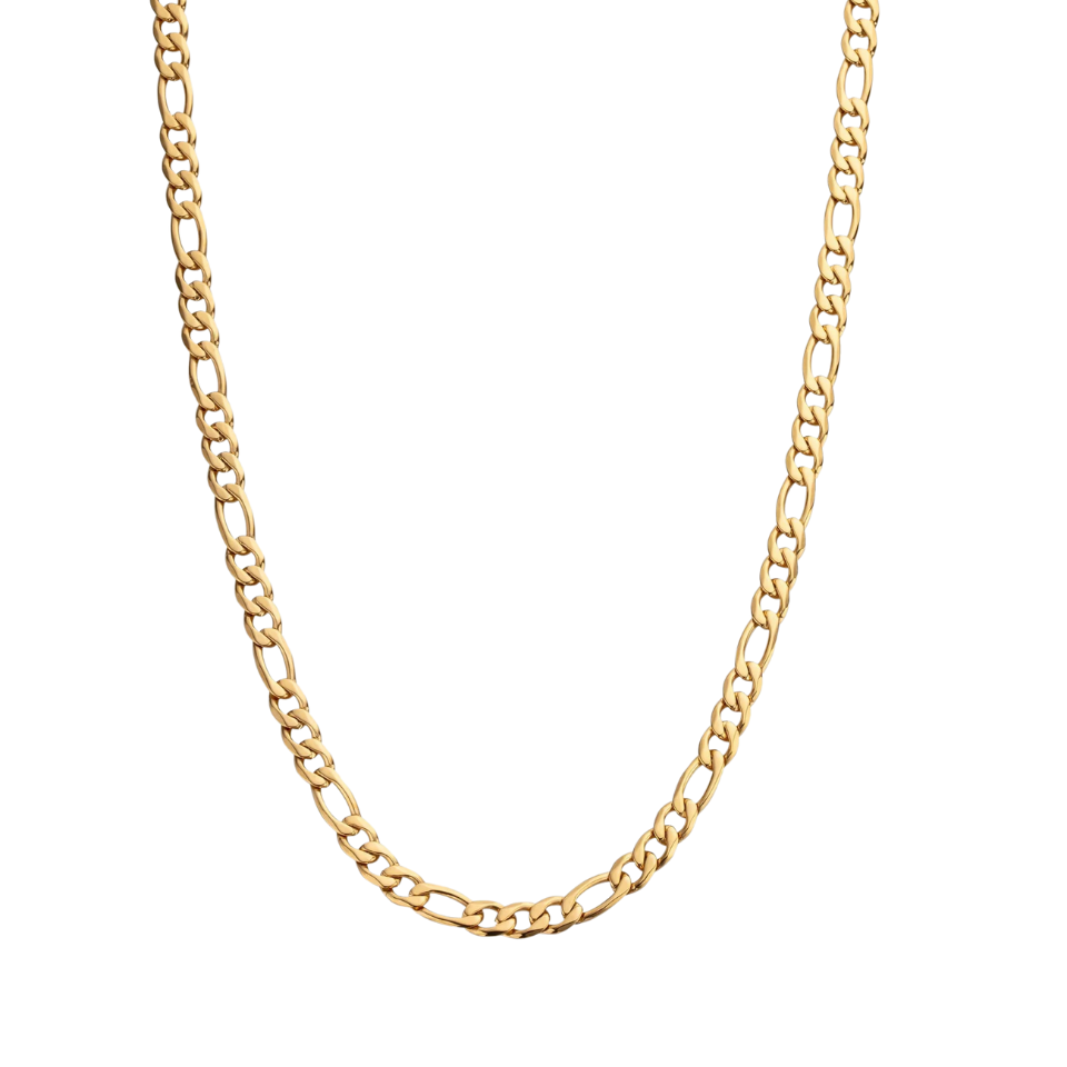 This Figaro chain offers a polished finish and a stylish design. making it a standout piece whether worn alone or layered with other chains.